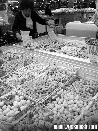 速冻饺子、速冻汤圆早已“穿上外衣”,但速冻牛肉丸等火锅热门菜仍在裸卖,卫生安全让人担忧。