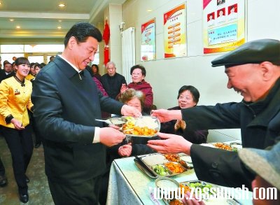 2月4日,中共中央总书记、中共中央军委主席习近平来到兰州一家“虚拟养老院”的养老餐厅,了解有关情况,还端起一个盛满饭菜的餐盘,走到72岁的老人杨林太面前,轻轻送上,请他用餐。