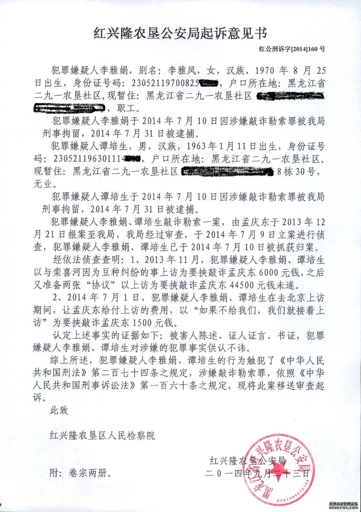 中国监督网编辑王金祥,建议黑龙江省人民检察院依法监督黑龙江农垦红兴隆管理局公 安局、检察院依法撤销李雅娟敲诈勒索案.立即释放李雅娟