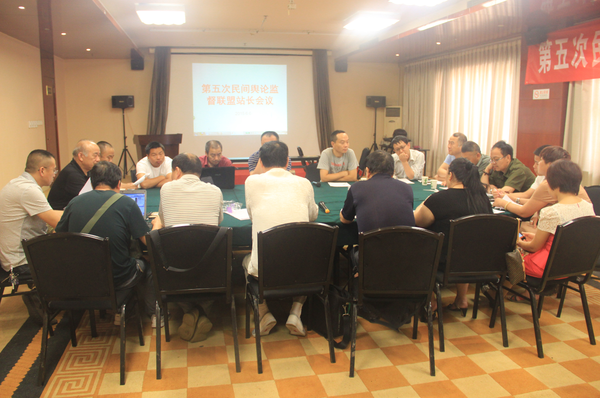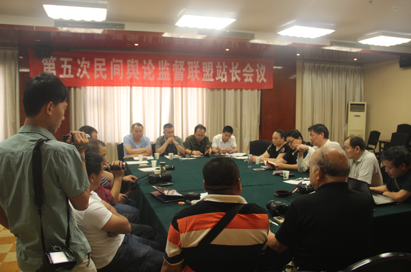 民间舆论监督联盟讯2015年6月6日,第五次民间舆论监督联盟站长会议在北京召开。会议当天,来自全国各地的20多位民间舆论监督网站负责人齐聚一堂,对当前网络舆论监督的现状和今后的民间舆论监督的发展进行了深入探讨。参加第五次民间舆论监督联盟站长会议的网站负责人一致认为,大家在依据宪法行使监督权以及鞭挞丑恶与惩恶扬善的同时,还要积极为创建社会主义和谐社会法治中国和推动社会的进步贡献自己的力量。