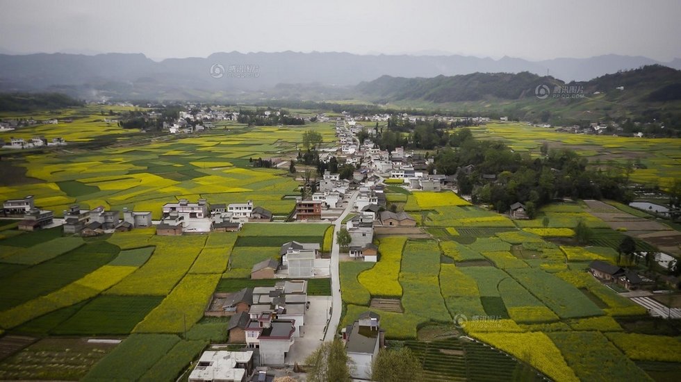 高清:航拍四川雅安芦山县震前秀美的田园风光(2013年3月20日摄)。阳春三月,大地吐绿,在空中鸟瞰四川盆地与青藏高原交汇的四川省芦山县,一幅幅大自然 多彩的田园画卷铺洒而下,令人陶醉。四川省芦山县位于青衣江上游,境内高山、中山、低山、河谷、台地垂直分布,明显的垂直地带分布和适宜的气候条件造就了这里差异巨大的美妙景观。