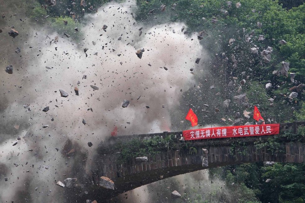 高清:灾区桥坚强!巨石压不垮 炸药伤不到