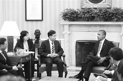 同日,美国总统奥巴马在华盛顿白宫椭圆形办公室会见汪洋和杨洁篪。