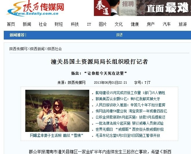 潼关县国土资源局局长被指组织殴打新西部杂志记者