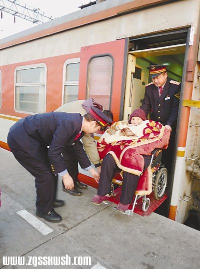 来自安徽萧县的谢长友在列车工作人员的帮助下,顺利把坐轮椅的奶奶安顿在了软卧车厢。谢长友此行是要把84岁的奶奶接到新疆阿克苏养老。