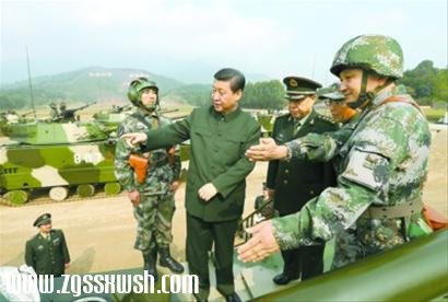 2012年12月10日,习近平在广州军区某部训练场,登上两栖突击车了解装备情况。